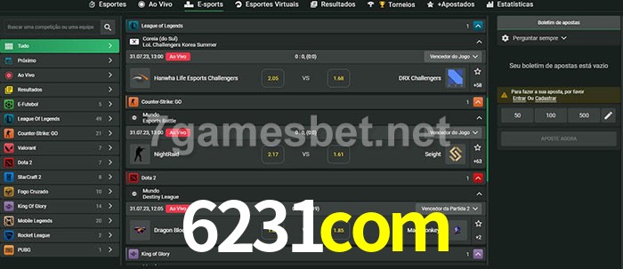 O 6231com oferece uma grande seleção de opções de apostas em e-sports com probabilidades competitivas